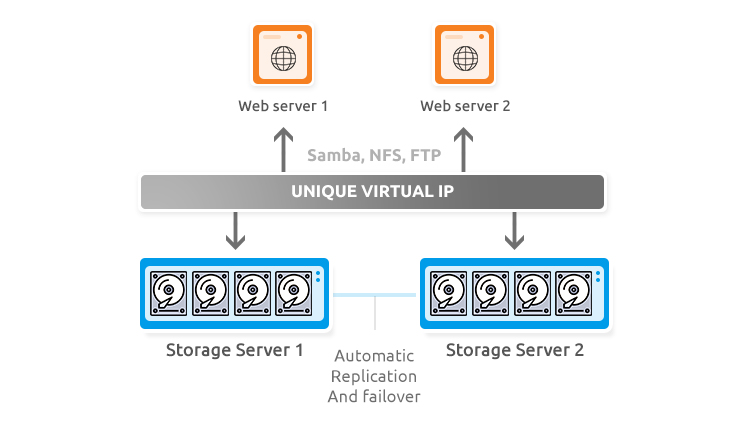 A NAS architecture allows you to connect multiple app servers to centralized storage servers with replication and failover. Each app server accesses the same data.