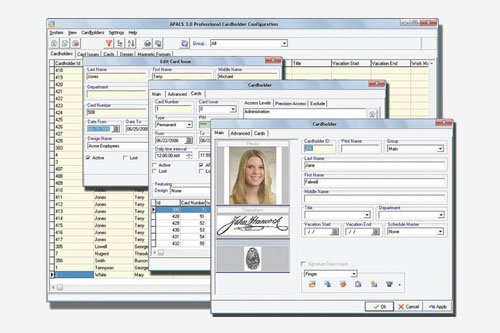 APACS Biometric Extensions make handling advanced credentials easy by seamlessly integrating biometric enrollment into the card management interface your users are already familiar with. Configurable options for all functions means easy installation of biometric enrollment readers and quick setup of access readers. Save memory and enhance security by downloading templates only to readers where an access level allows a user to enter.