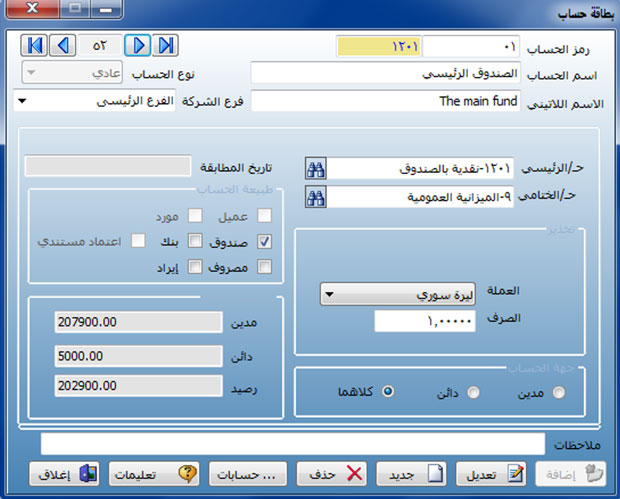 - Card Account: This is the encoding process of the accounts and determine the types (Normal or final or Distributive or .. ) the chart of accounts can be built smoothly with possibility to determine the nature of account ( customer – supplier – cash – Bank – a letter of credit)