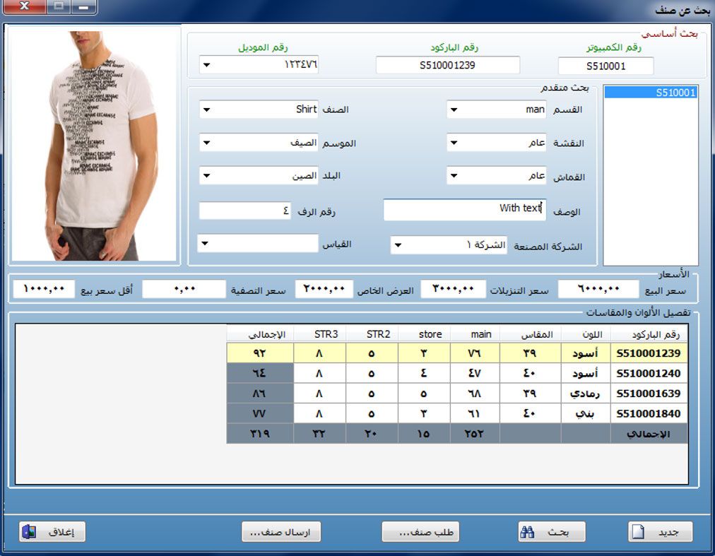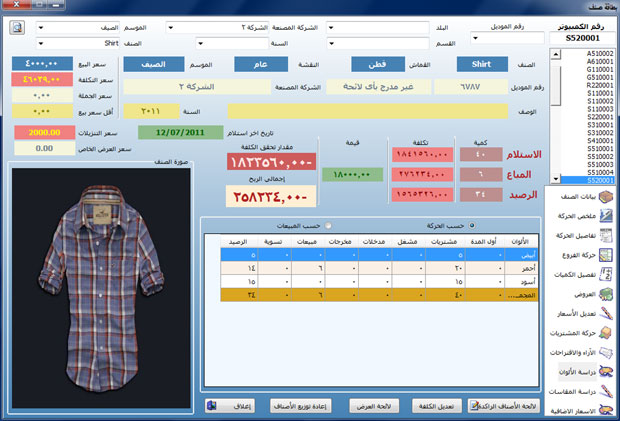 A comprehensive program nicely bilingual (Arabic – English) is designed specifically to meet all the requirements of clothing companies, without exception, is based on the provision of services in all stages of the goods from the beginning of the procurement process (ordering the work) until the end of the sale process (point of sale) has been carried on established a group of programmers and designers who are closely related to a group of the largest clothing companies in Kuwait tucked under so all gaps and problems that may occur by any company.
