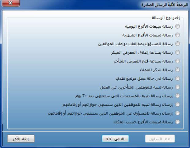 - Daily/monthly message at definite time and to particular assigned GSM numbers; showing the sales activity in branches.